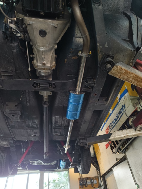 ちなみにタテグロの純正は38Φ程で、2000ccには細すぎのような気がします。もしかしたら排ガス規制の関係かな? 660ccのジムニーより細いのはほんと笑えます。